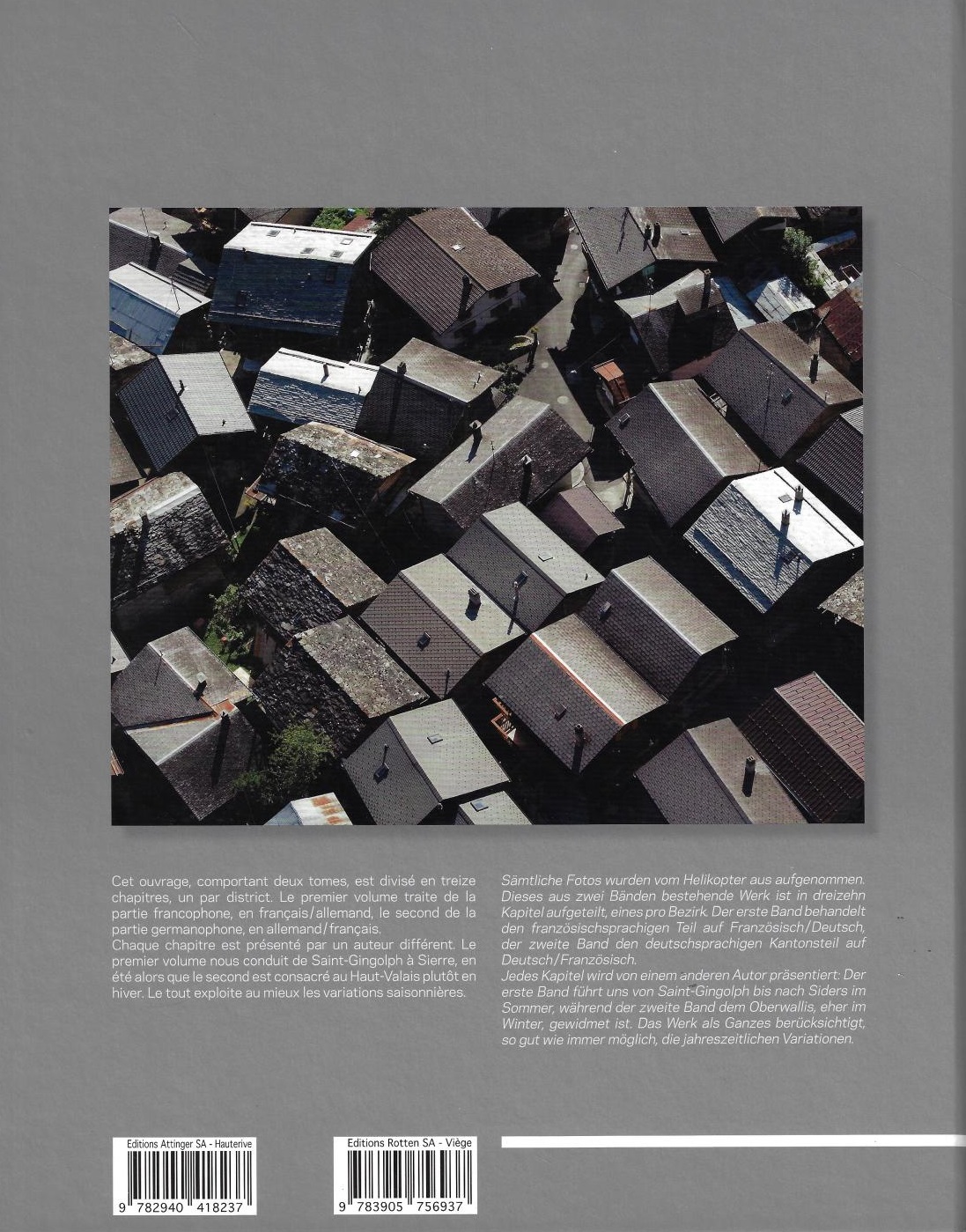 Le premier volume nous promène de Saint-Gingolph à Sierre en été (textes fr-all), tandis que le second est consacré au Haut-Valais principalement en hiver (textes all-fr).