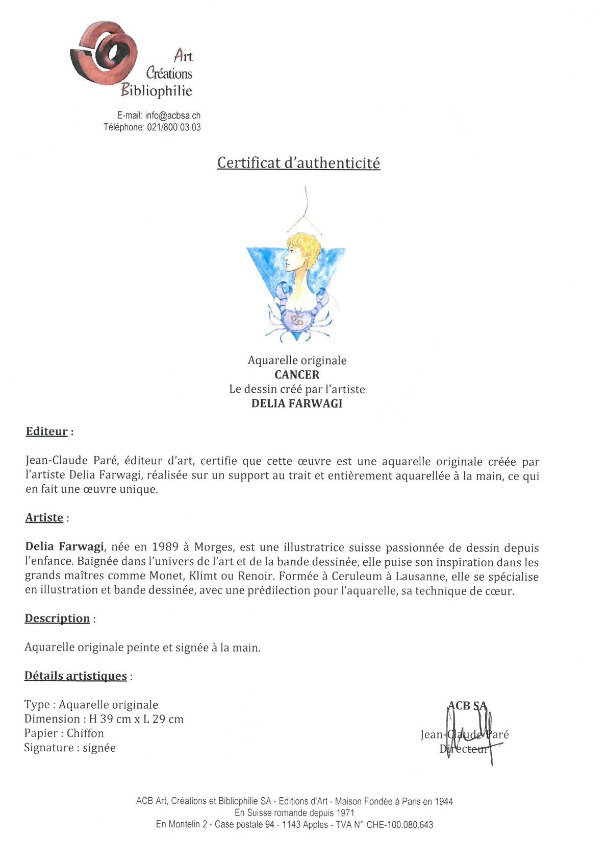 Certificat d’authenticité remis pour tous achats de nos produits.