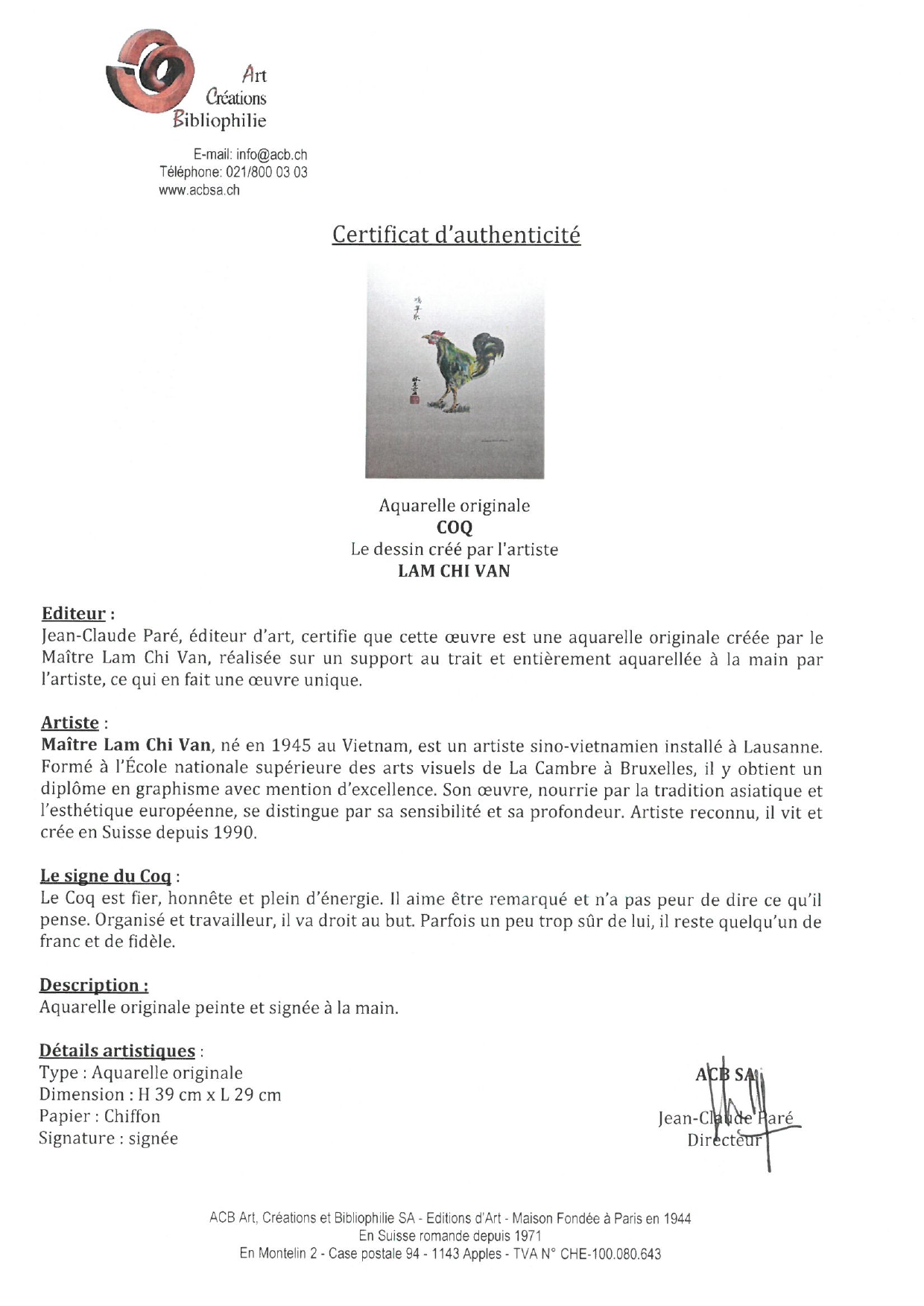 Certificat d’authenticité remis pour tous achats de nos produits.